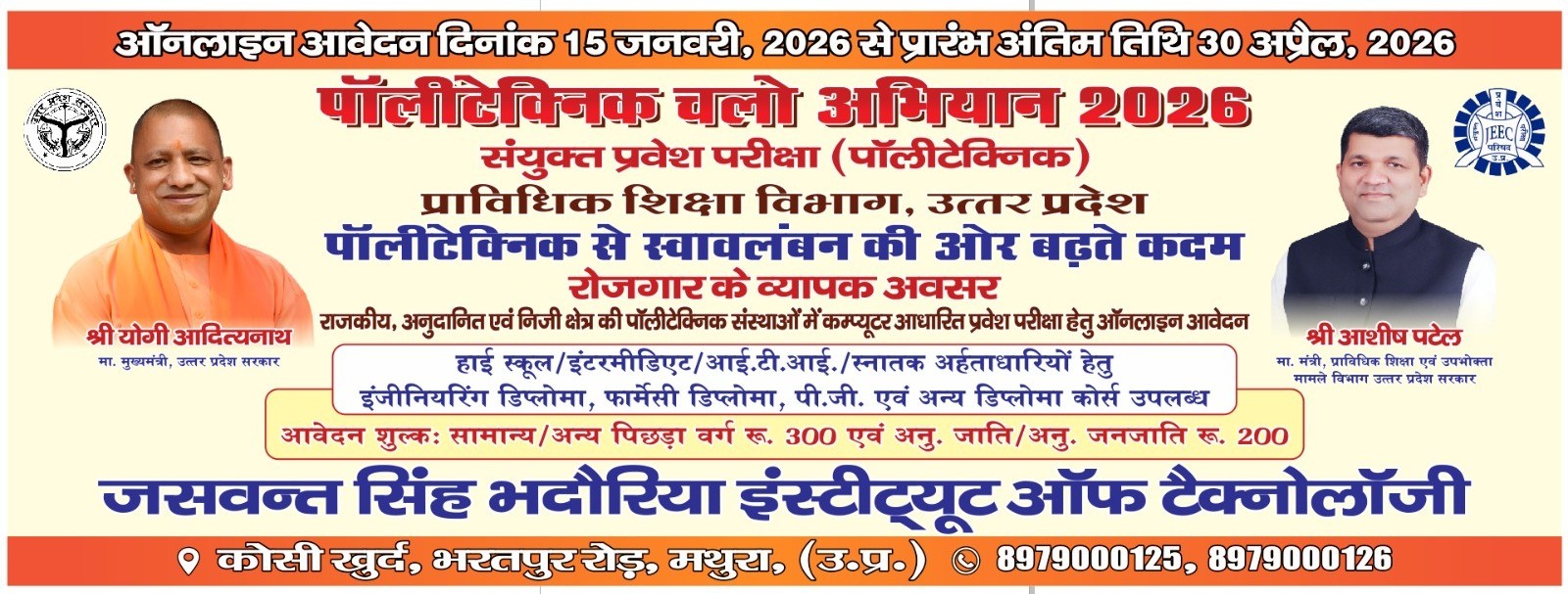 JSBITM Institute of Technology is an AICTE approved institution which is affiliated by board of Technical Education, Lucknow. This institute is legally and systematic founded and established on the year,2010 at Kosi Khurd, Bharatpur-Jaipur road in Mathura (U.P) It is located just 10 KM. Far from the railway junction and bus stand of Mathura. JSB Institution of Technology is one of the most renowned colleges which is well equipped with modern and scientifically modified technical facilities. The Institution has air-conditioned exhaustive classes, labs, library, well qualified and experienced teaching staff with natural atmosphere. Sports, entertainment and co-curricular activities will be encouraged timely. Hostel canteen and bus conveyance are also maintained by institution. So all the diploma courses have great opportunities for placement on attractive packages because JSBITM is deserving the best quality of education indeed.. Read More >>